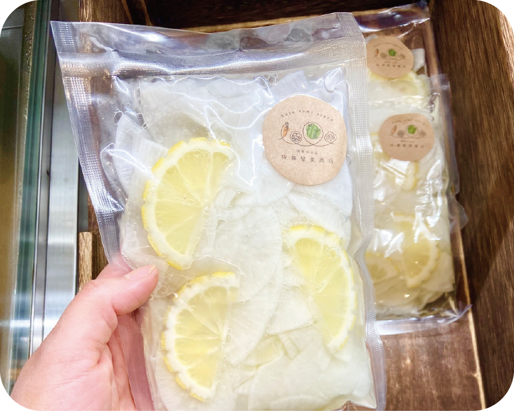 原材料名:大根、レモン、漬け原材料(砂糖、醸造酢、塩)